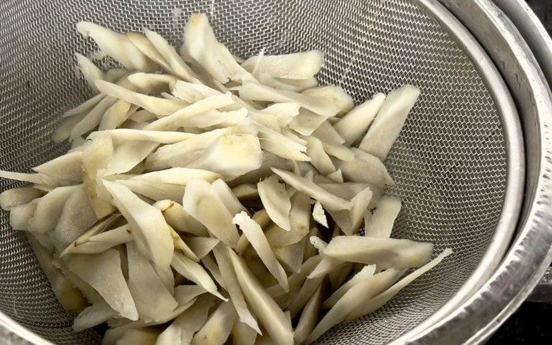 切ったらすぐに水にさらしてアクを抜きますが、長く浸けすぎると香りが飛んでしまうので、1〜2分程度で十分です。